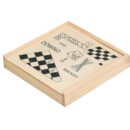 Wooden box including 4 games: domino, chess, drafts and mikado (the wooden sticks game).