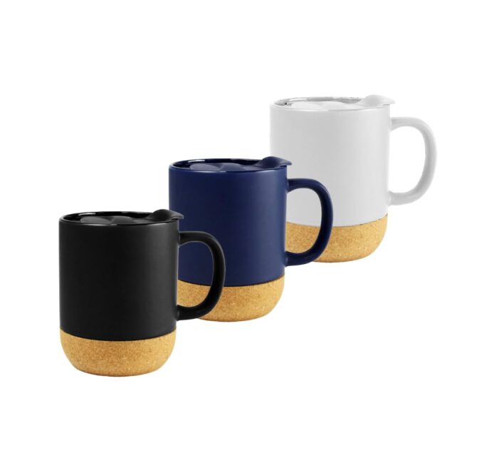A 330ml Ceramic Mug with Cork bottom and top lid.