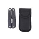 a premium stainless steel multi-tool with 15 function tools including: needle nose pliers, regular pliers, wire cutters, large, medium & small screwdrivers, double file, single file, small knife, medium screwdriver, can opener, bottle opener, phillips screwdriver, saw, hook remover, and sharp knife. Packed in a carry pouch.